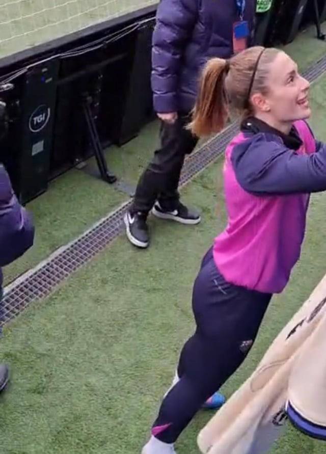 Por supuesto que lo sabe , no es solo por el fríoEra entrenamiento a puerta abierta y ella sabe perfectamente como le quedan esos pantalones tan apretados. No existen las causalidades y me encanta!