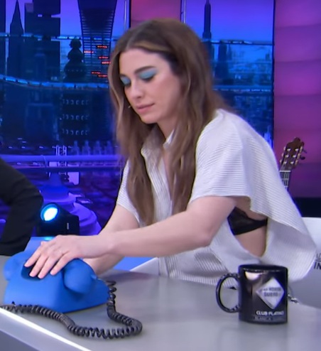 Esa cara y esa lengua juguetona... En El Hormiguero de días antes también dio buenos gestos con la lengua...Entrevista Programa "Late Xou"