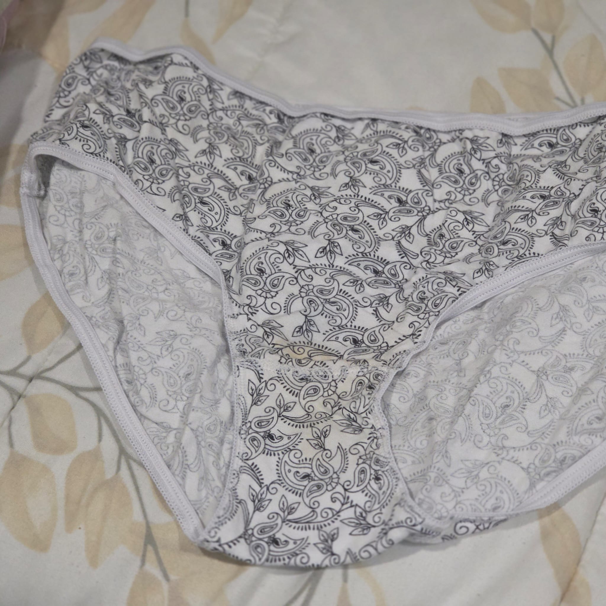 Que maravilla, ta las dio el?aqui tres bragas de la mujer de un compañero de trabajo, no son sexy pero solo de pensar que son de ella i la conozco en persona.