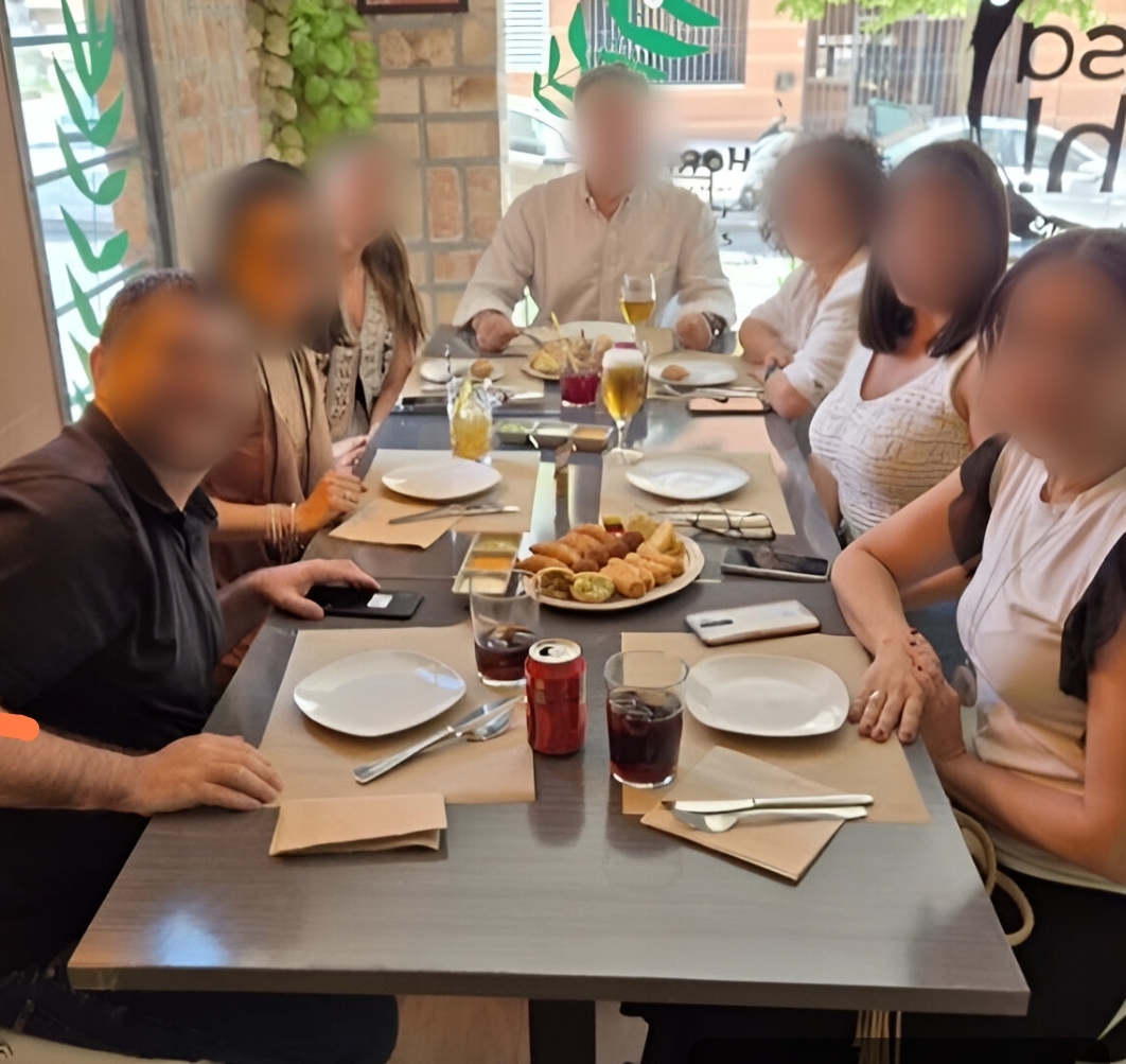 Mmmm la morena que está sentada a la derecha de blanco , sí que tiene dos melones de temporada uffff que morbosaComida de empresa...