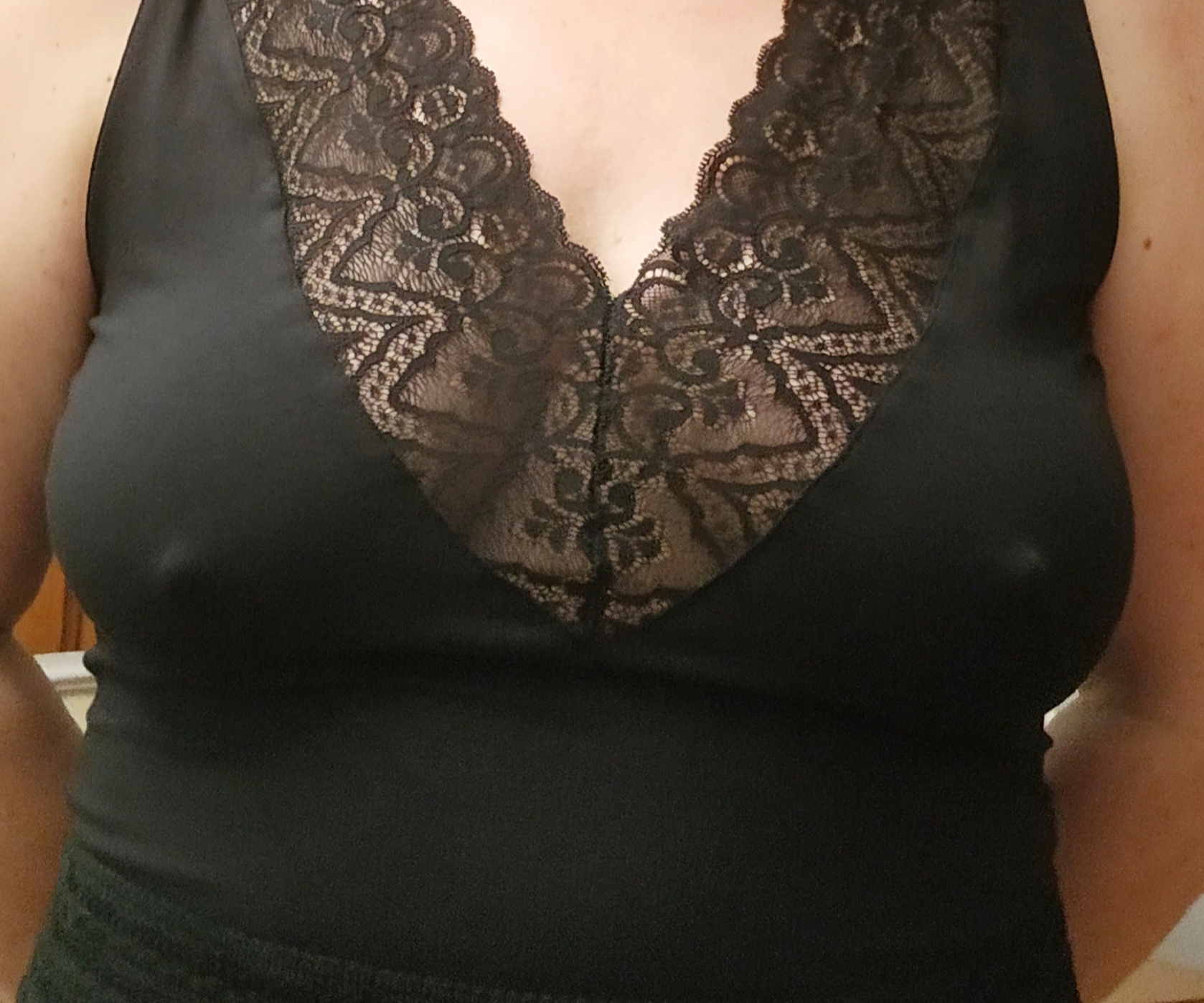 Ufff!! Que morboLa mía cuando empieza la noche está algo pendiente de que el escote no se abra más de la cuenta.