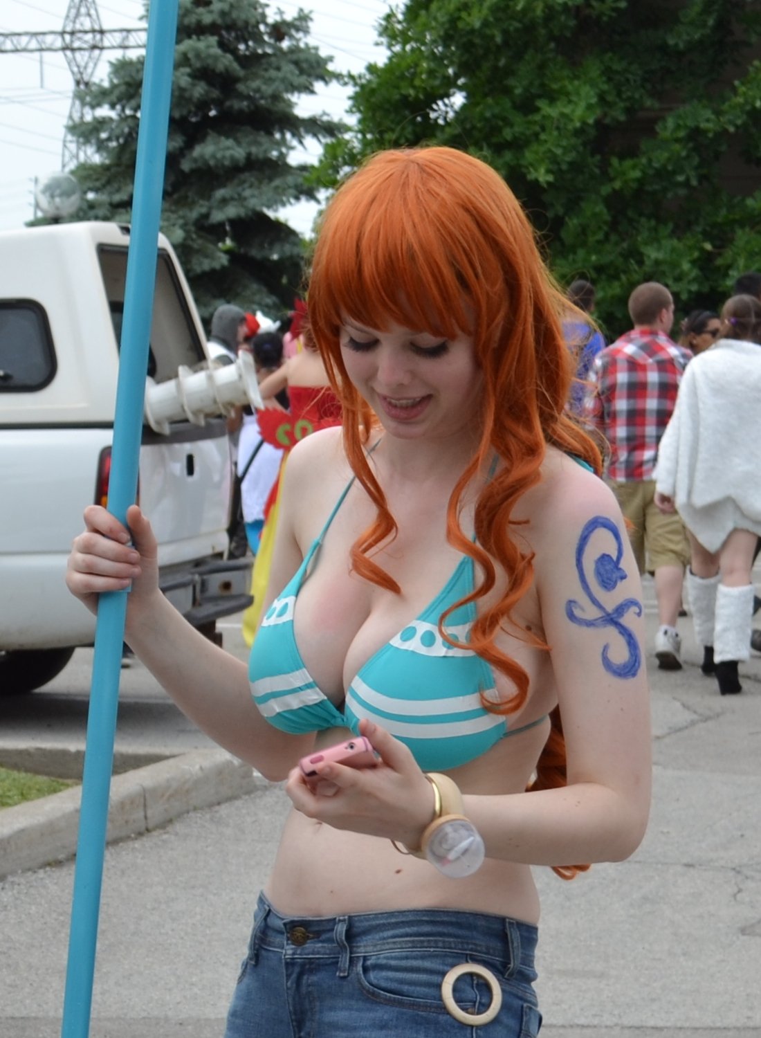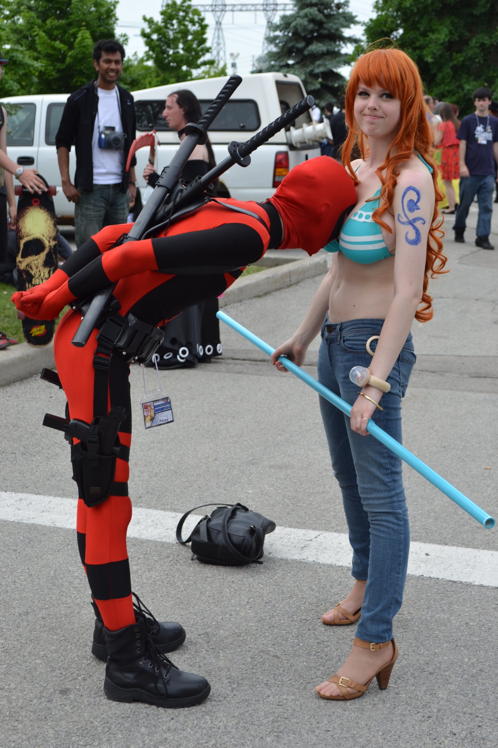 Ella podría usar sus pechos para sostenerlo.pero solo por sobrevivir jajaja.