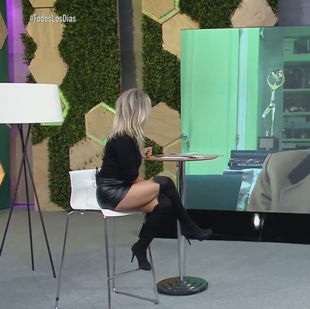 Uff tremenda jacaAqui en dos dias espectaculares, con una mini de cuero cortisima y otro dia enseñando tanga o braguita