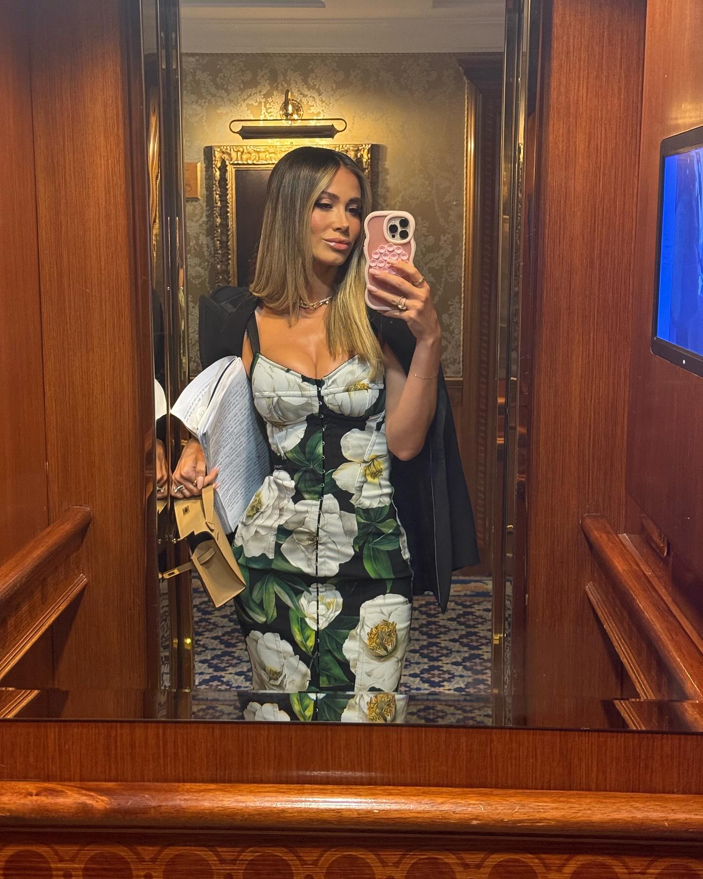Uf v aya modelito, faldita y con ese par de tetones, cómo se pone de gorda...
