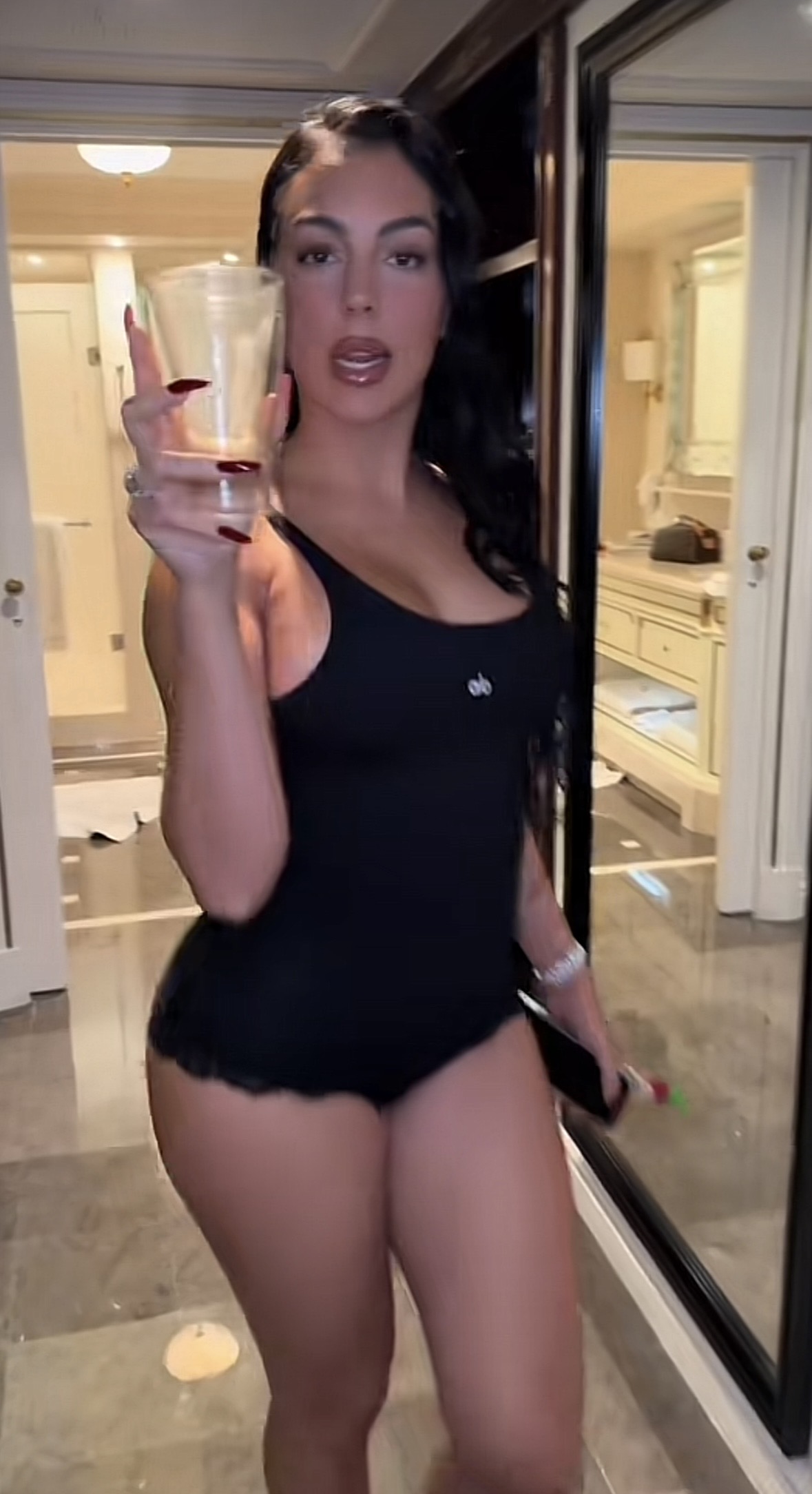En la primera foto parece que lleva un lefazo en el mini pantalon