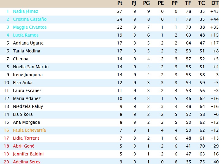 - Adriana Ugarte 4-8 Nadia Jémez
