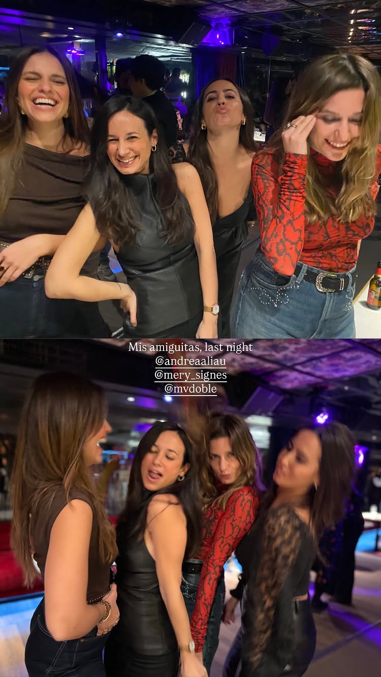 Al loro con su storie de fiesta con sus amigas. Parece que ese escote enseña más de la cuenta o es un efecto óptico...