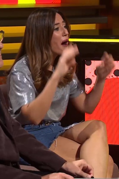 Sabe lo que hacer para tener audiencia jejee y es brutalGracias a los capturadores... Está increíblemente guapa y potente y no sabe salir en televisión con pantalones, afortunadamente, jajajaja... Hay momentos que mira hacia alguna pantalla y se está viendo, y sabe que está luciendo esos muslos tremendos...
