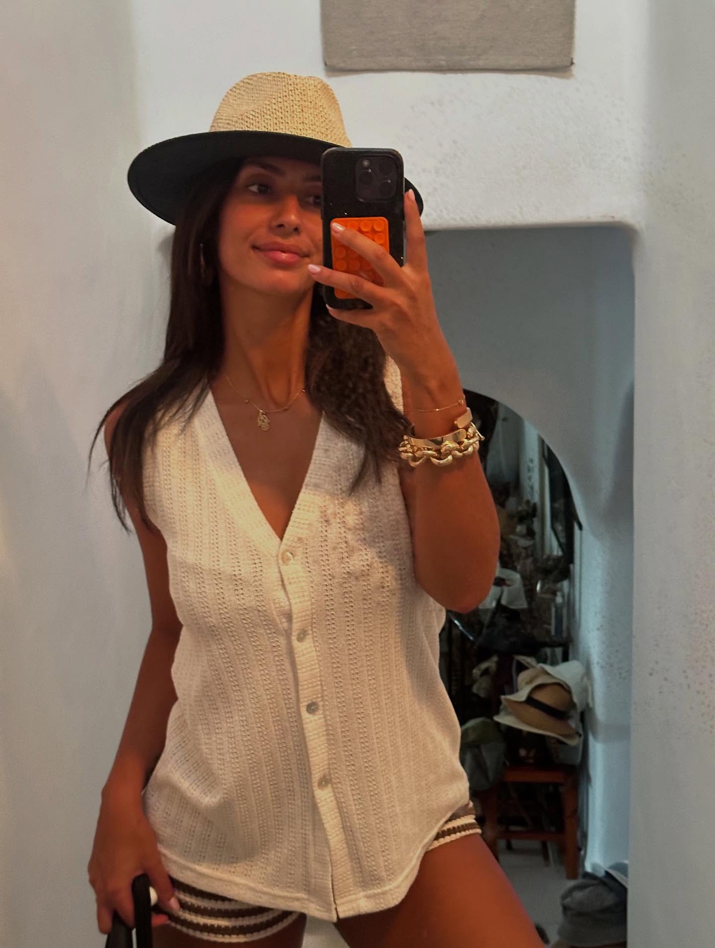 Una pena de ropa hoy porque se paseó mucho y marcó bastante teta (a pesar de que la ropa no acompañó nada). Otro día bastante desperdiciado.