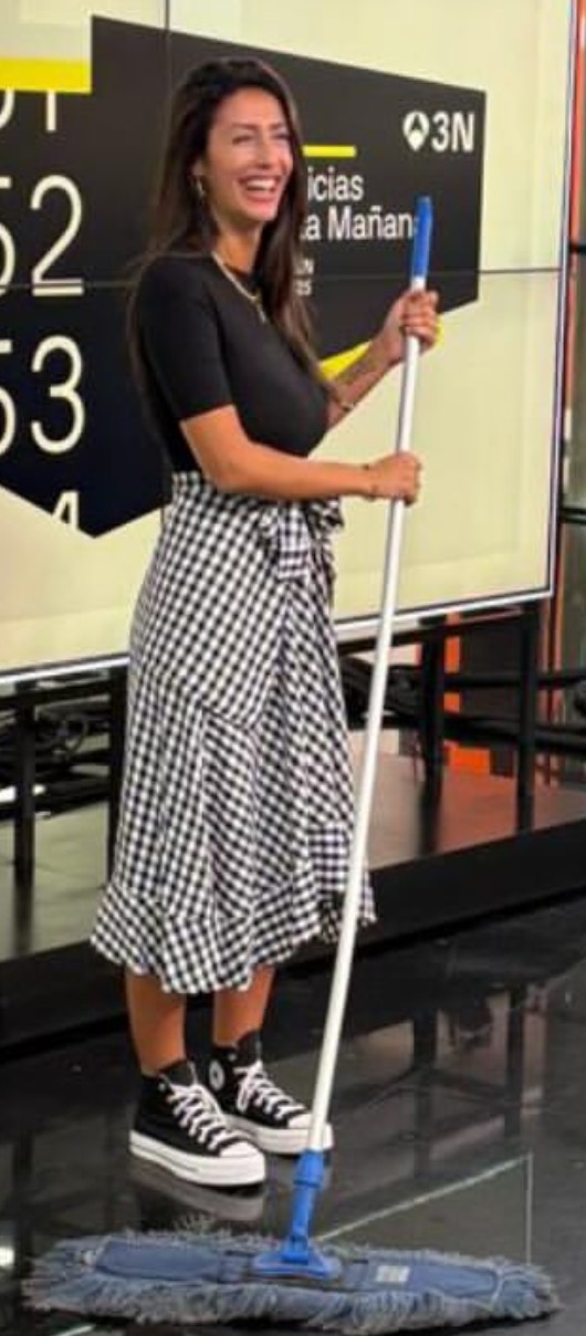 Me da a mi que a esta le gusta poco trabajar, en cuando puede sale corriendo, incluso ahora con las vacaciones del otro esta de titular por las mañanas y solo lo hace de lunes a miercoles.Se la veía desganada hoy. Hasta en esta foto su cara es de circunstancias. Para mí que Manu la llamó desde la playa y le dijo que a currar, que ésta ya quería empalmar resfriado con fin de semana.