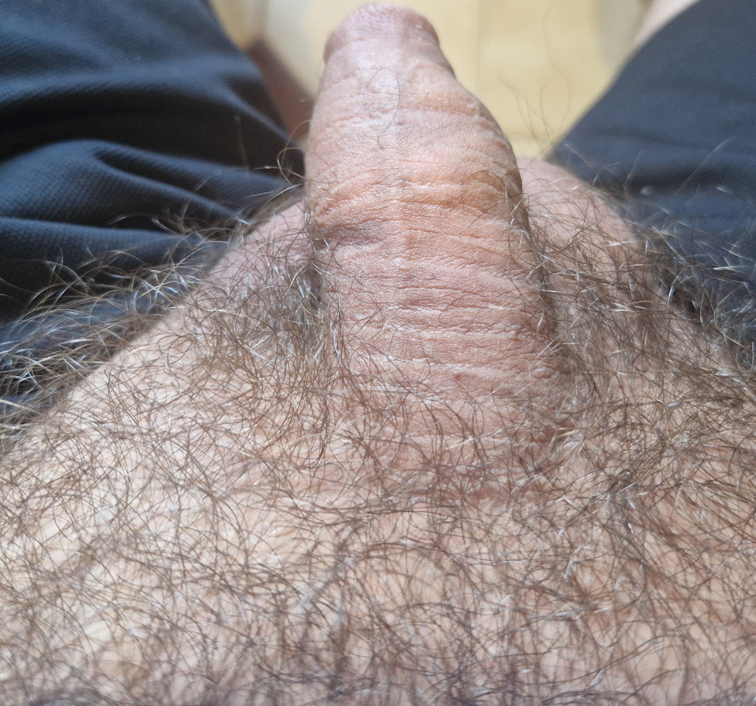 Todo bonito pero ese capullo carnoso me encanta.Primerísimo plano de mi morcillona (ni erecta ni flácida).