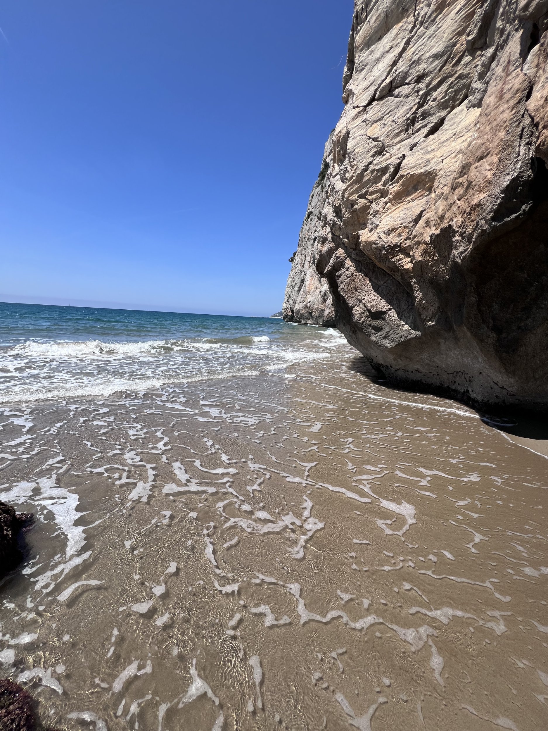 Hay dos, una calita pequeña que ahora con la subida del mar es más pequeña aun, y entre la roca grasa de calella y el faro hay otra, al costado de la roca grosa entre calella y santpol también hay otra nudista, genera se sabe que las parejas o personas que se quedan después de las 6 cuando comienza a caer el sol, es para lo que surja, es emocionante.
