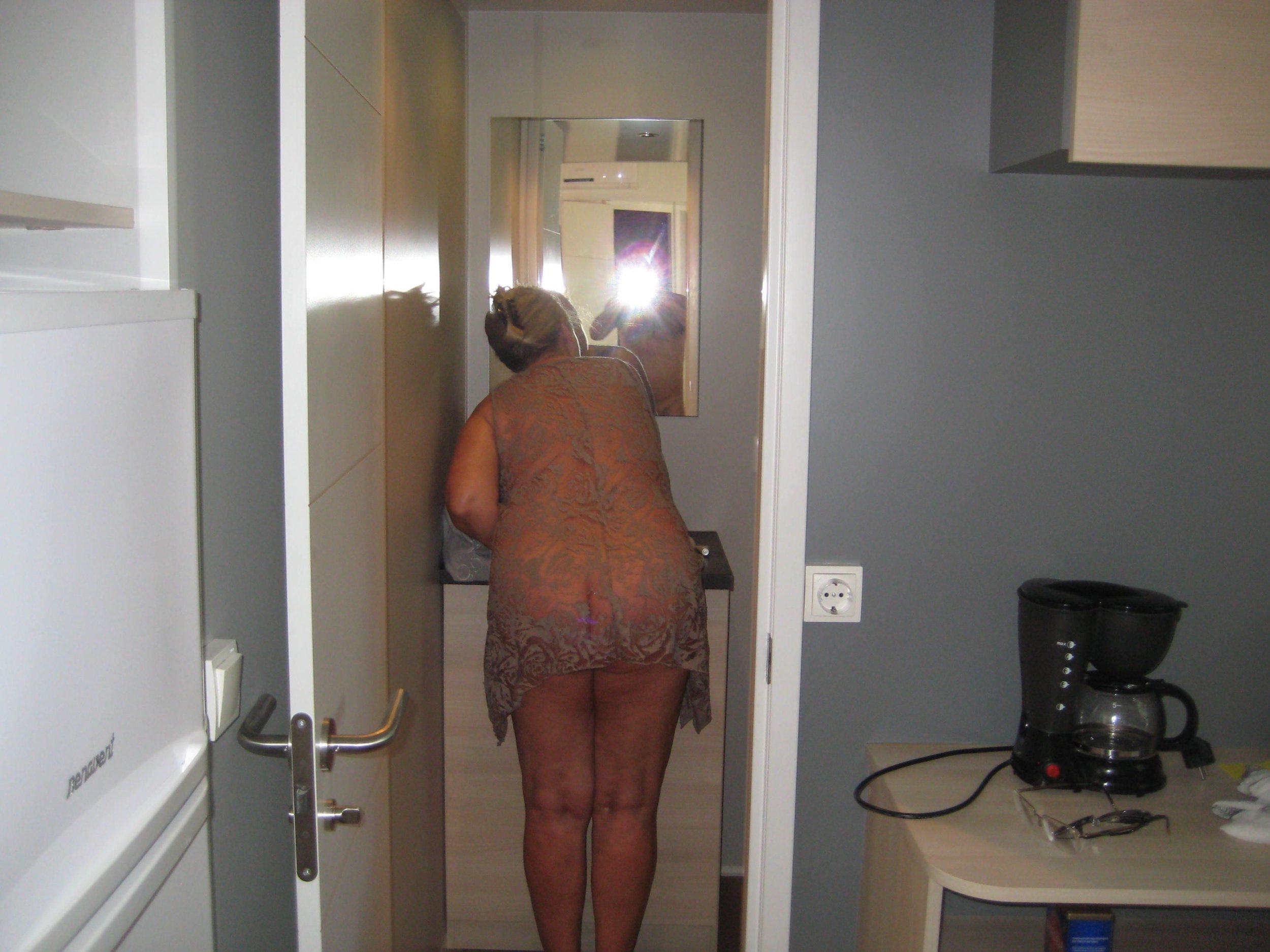 Deliciosaaqui mi mujer con su camisa transparente.