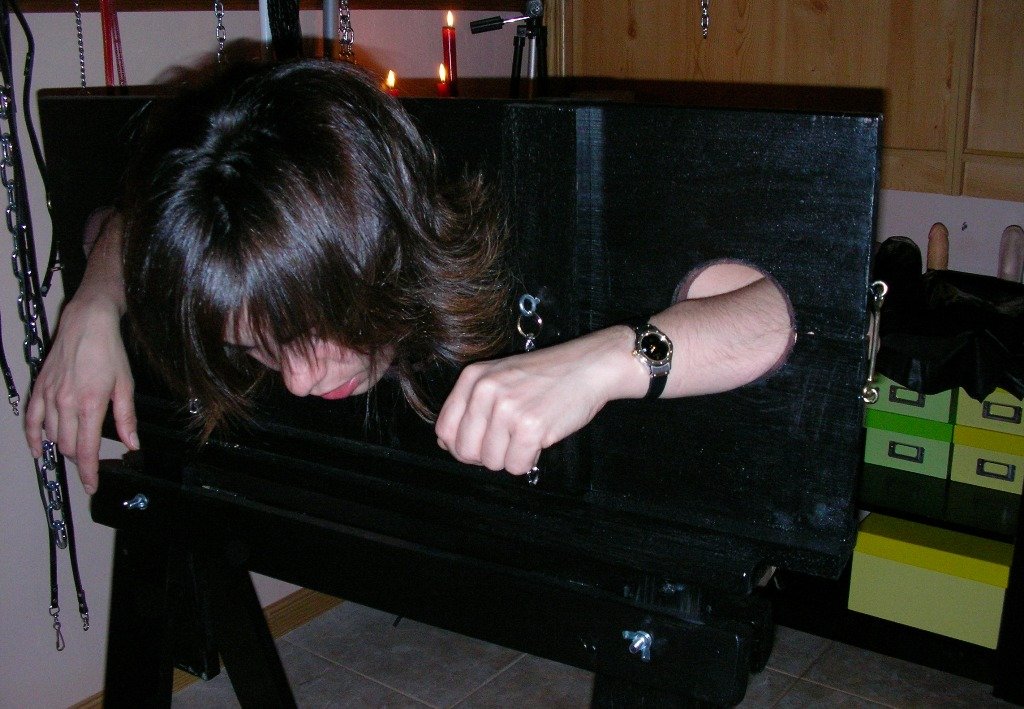 Los juguetes que no se van a usar se guardan en su sitio.Después de encularla y sobarla, la zorra es enjaulada con grilletes y cadenas en sus patas