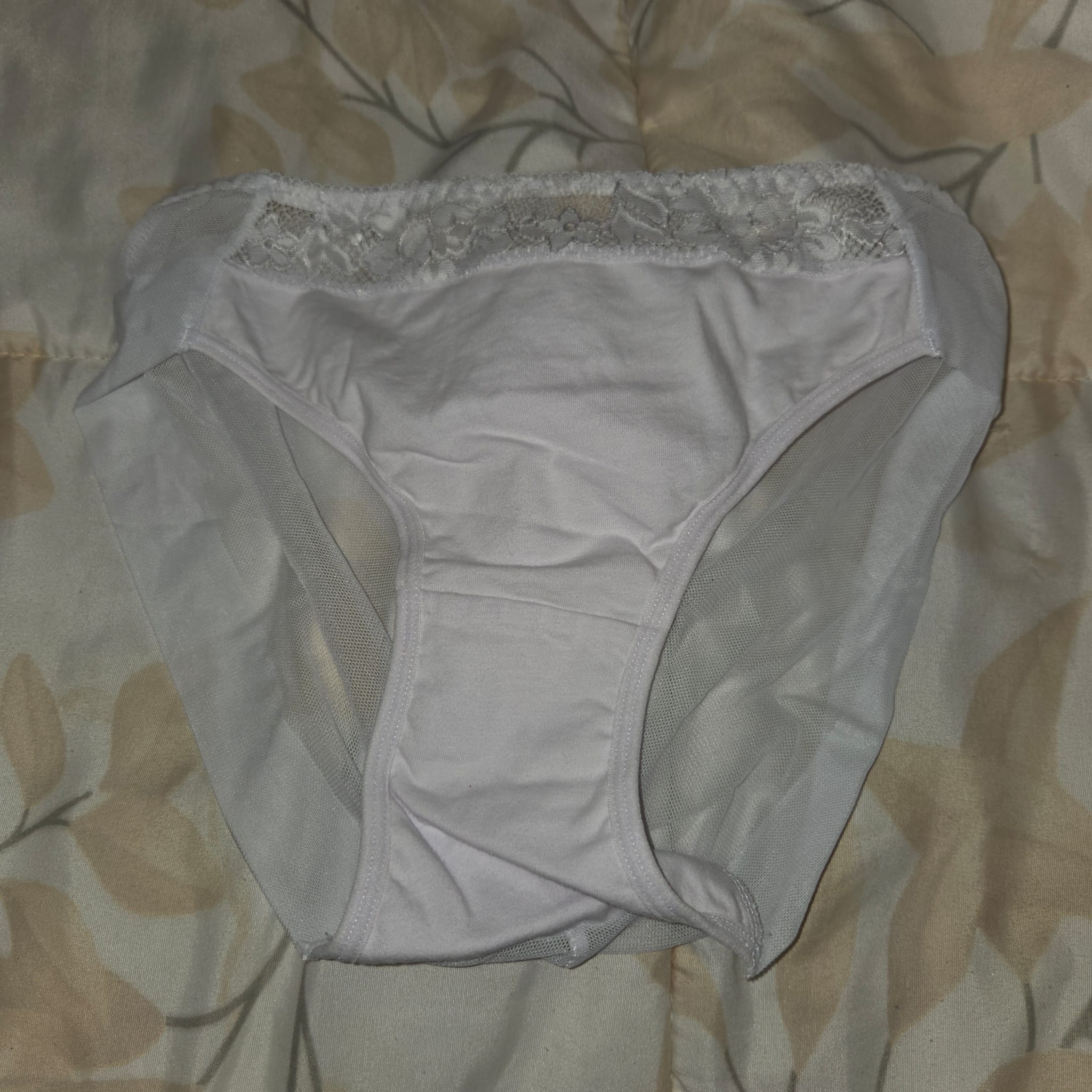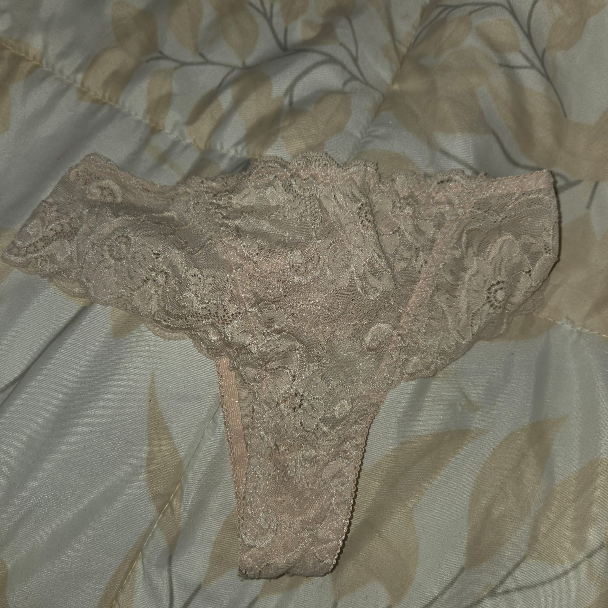 Que maravilla, ta las dio el?aqui tres bragas de la mujer de un compañero de trabajo, no son sexy pero solo de pensar que son de ella i la conozco en persona.