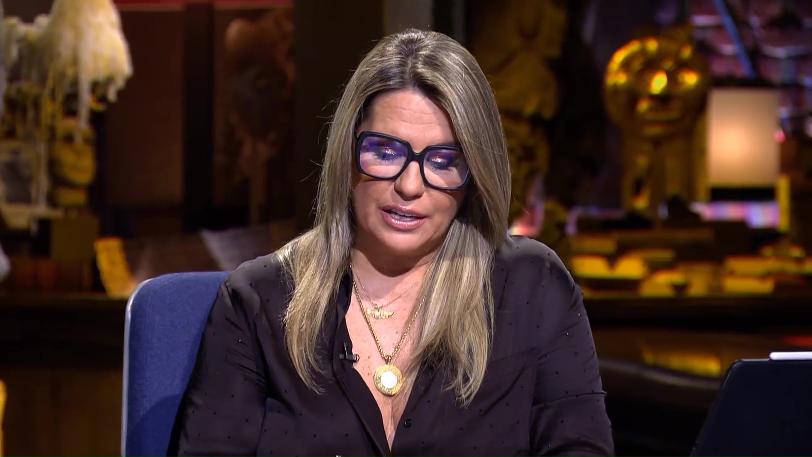 Algo le pasa, sigue tremenda, pero recatada... El domingo, guapa, interesante con las gafas y un poco de balcón. Sabe a poco, con lo que ella ha sido...Carmen ayer