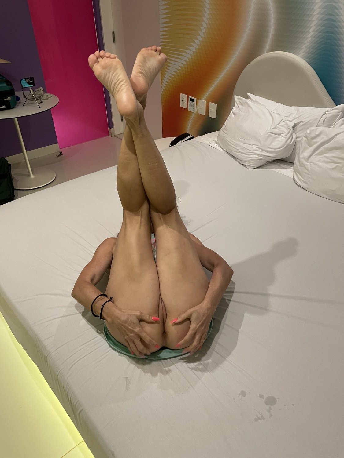 Con las piernas abiertas en forma de letras (M, V, W...) y similares
