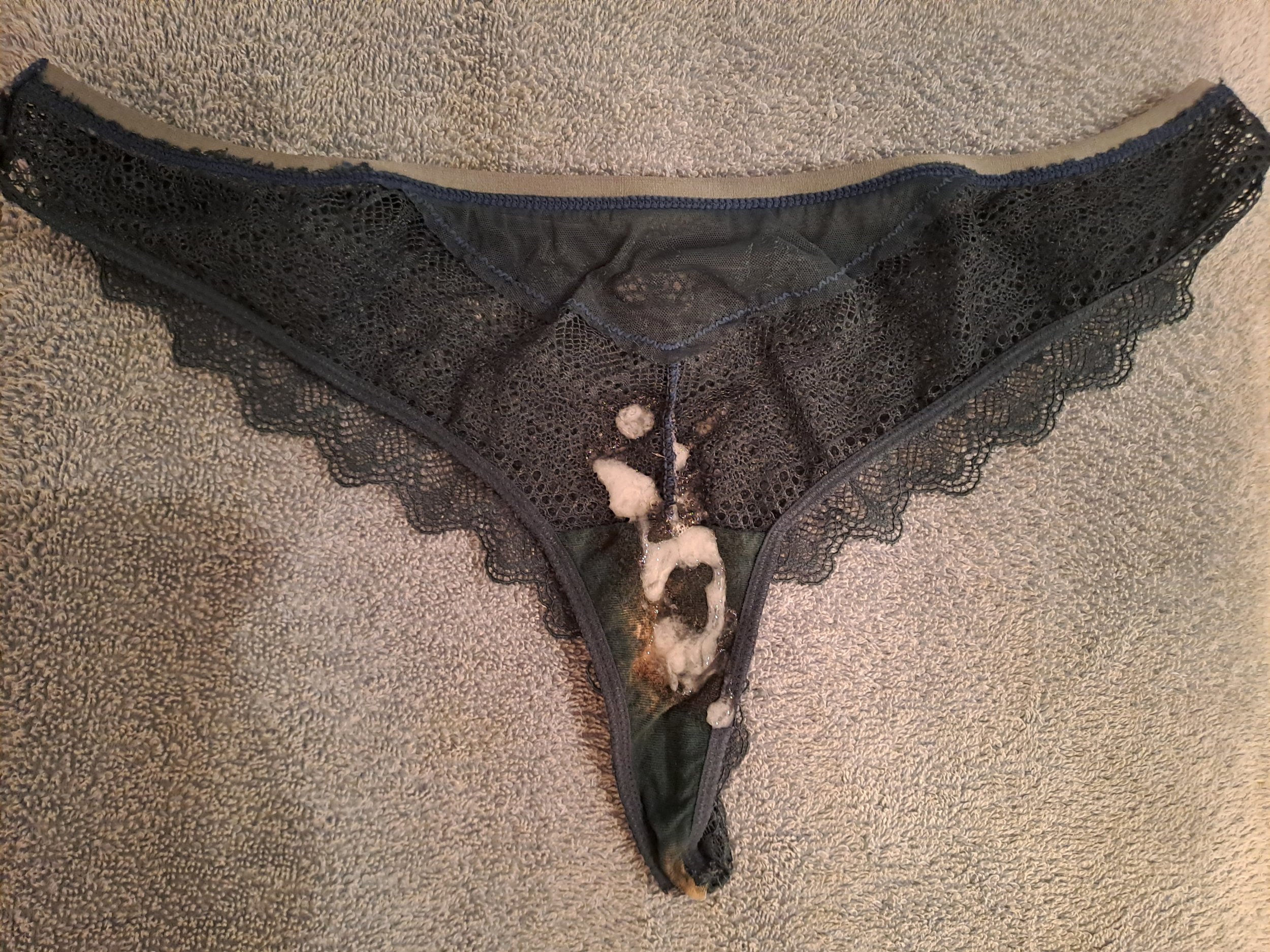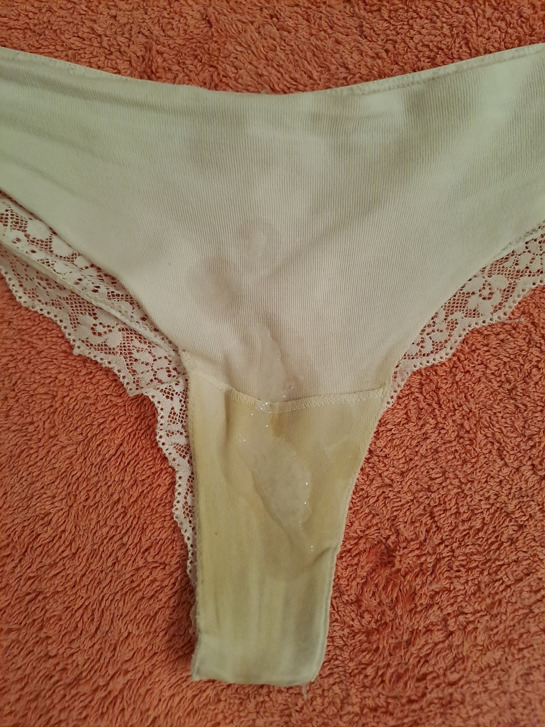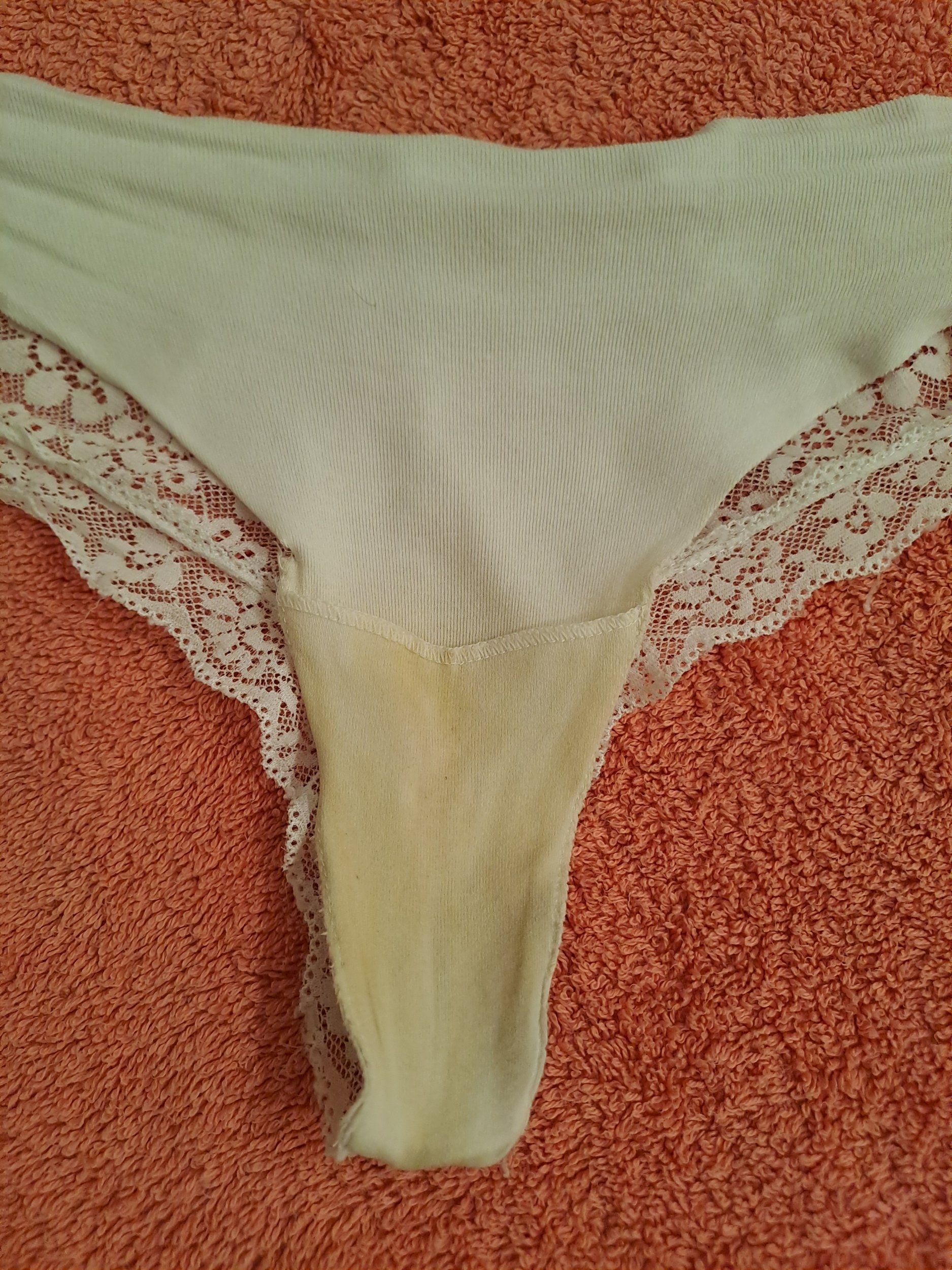 ojo que estaban bien sucias... esas para oler estarían bienTanga de mi mujer antes y después de una buena corrida