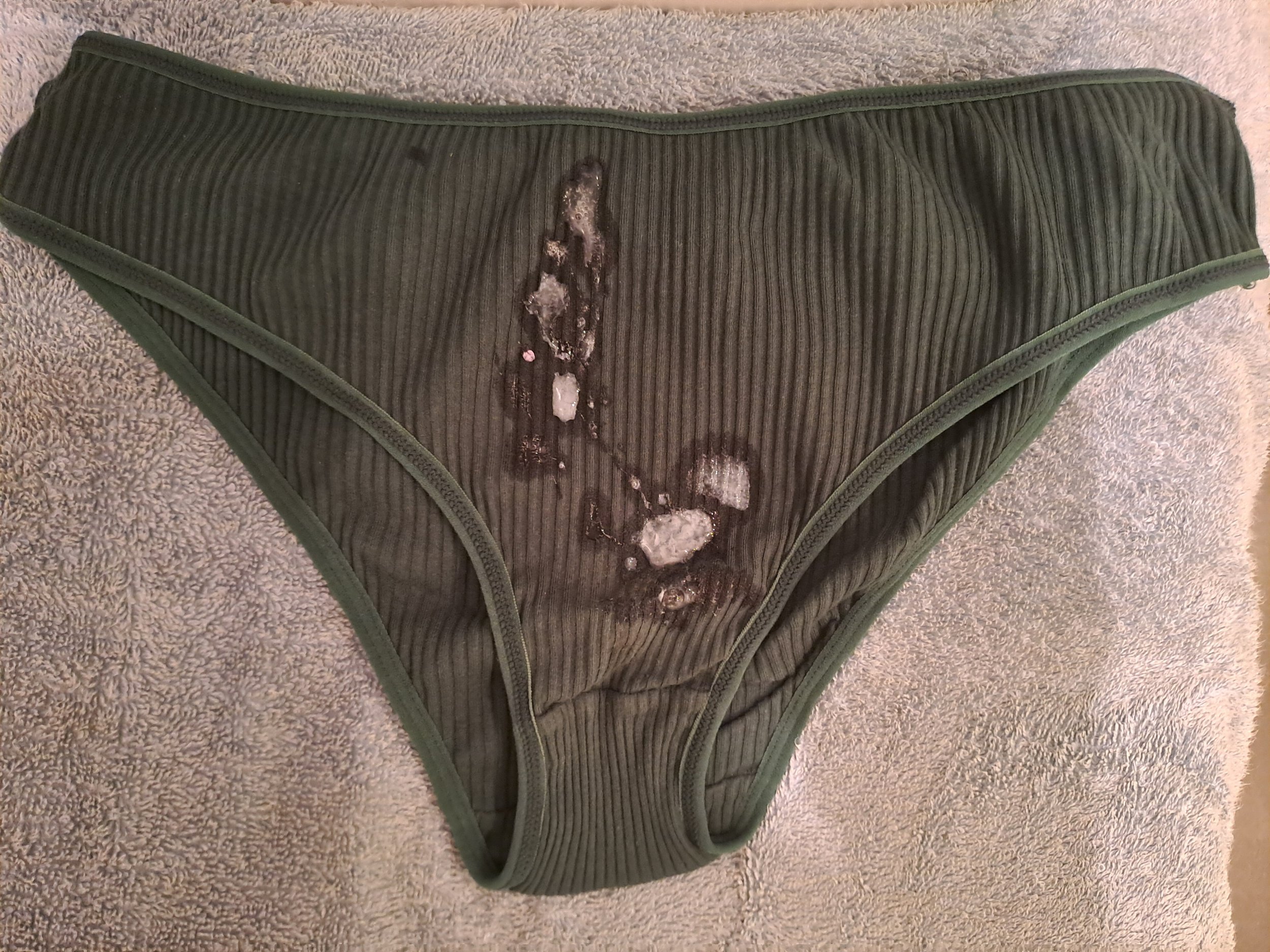 Me pone muxhoooo....cada rato mas ver como ech谩is la leche en las braguitas.....Joder que lechazo le as pagado a esas bragas ke morvazo