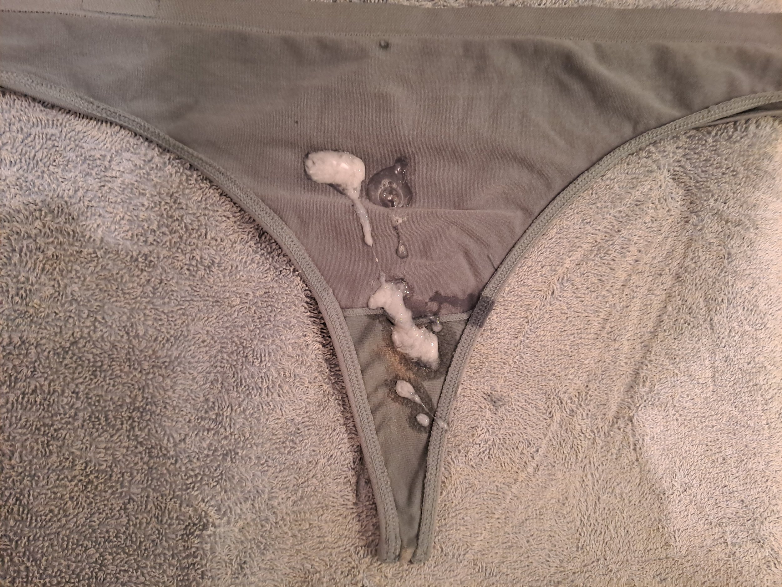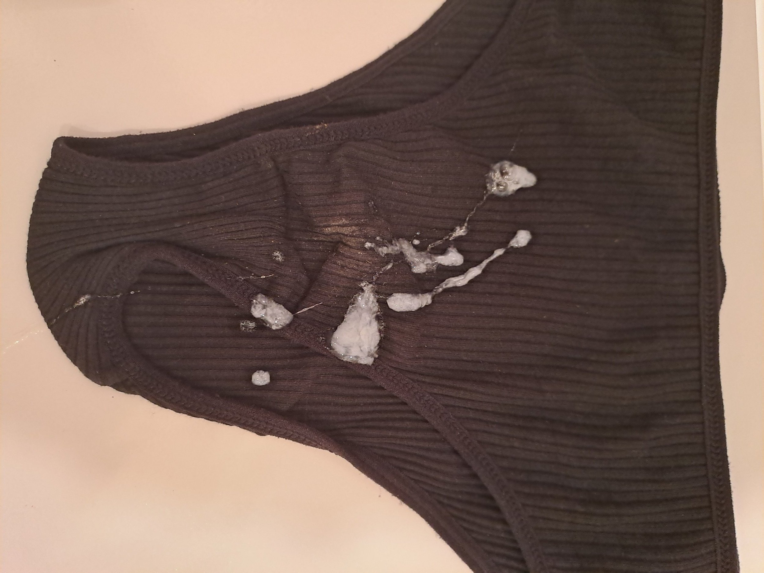 Mmm vaya morbo!! Ese tanguita con jugos aderezado con lecheLeche sobre tanga usado. Antes y despu茅s.