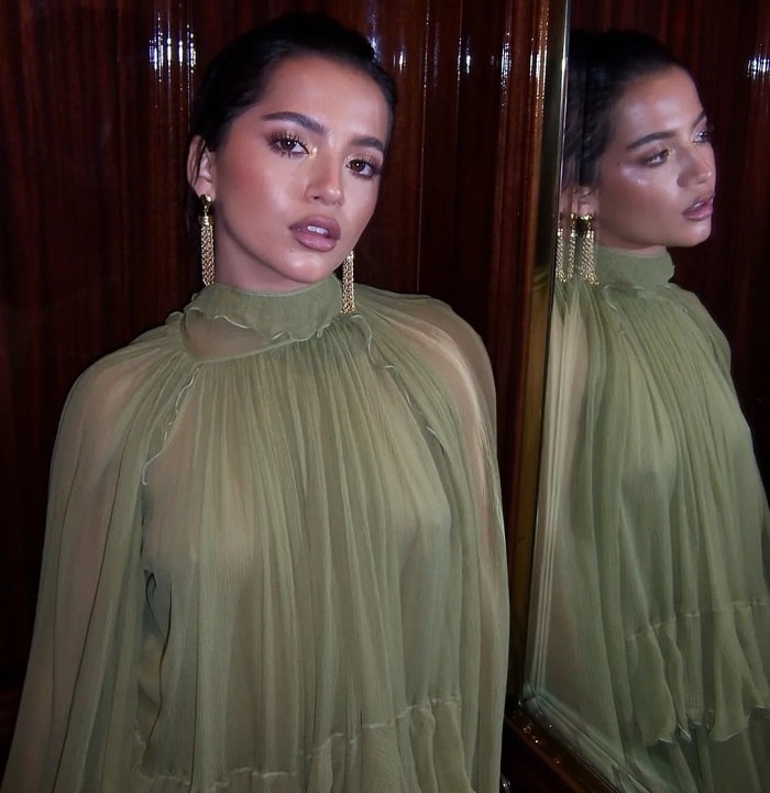 Cuando está de pié aparecen en zapatillas. Es ciertoNo. Salió así en lencería.
