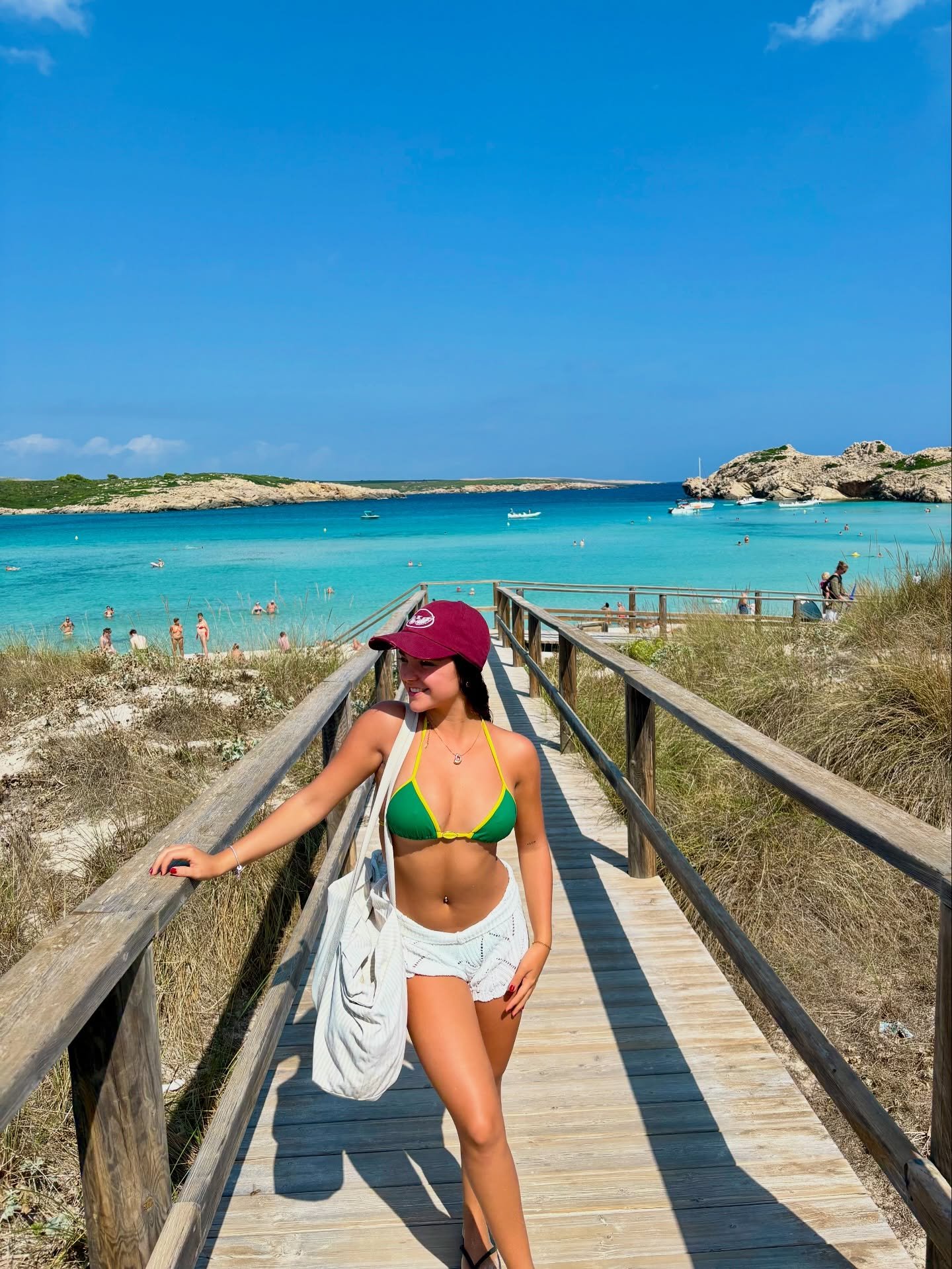 Con mallas de deporte.