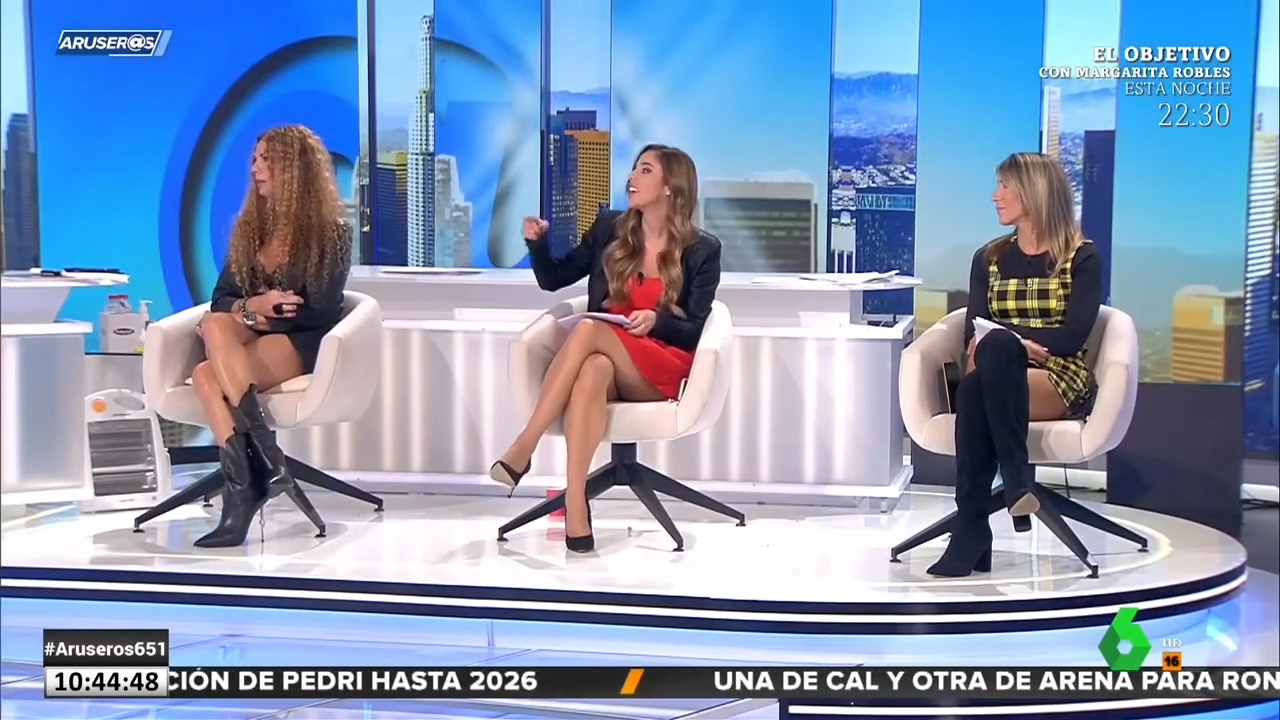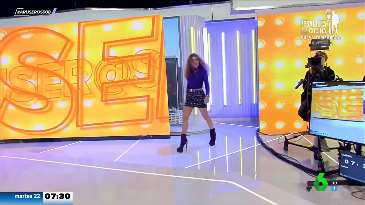 Tiene que enseñar las nuevas tetas pagadas por Arus, ella ya luego se las enseña a su entrenador personal, que le va mucho sudar sin ropa....Lo de Angie esta mañana ha sido de escándalo: un escote enseñando un generoso canalillo entre sus dos gordos pechos...Otra vez la mas madura de las Aruseras compitiéndole a sus compañeras más jóvenes...y ganando( una vez más) en sensualidad![]()