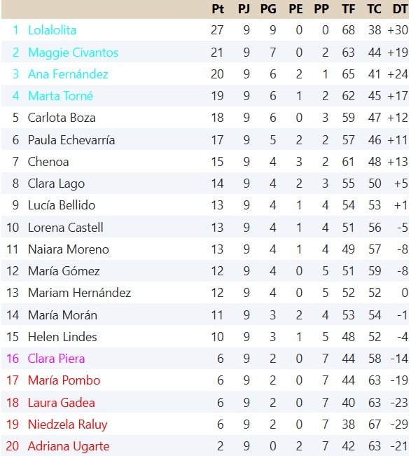 - Clara Piera 6-5 María Pombo