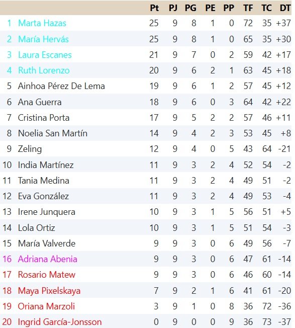 - María Valverde 3-8 María Hervás