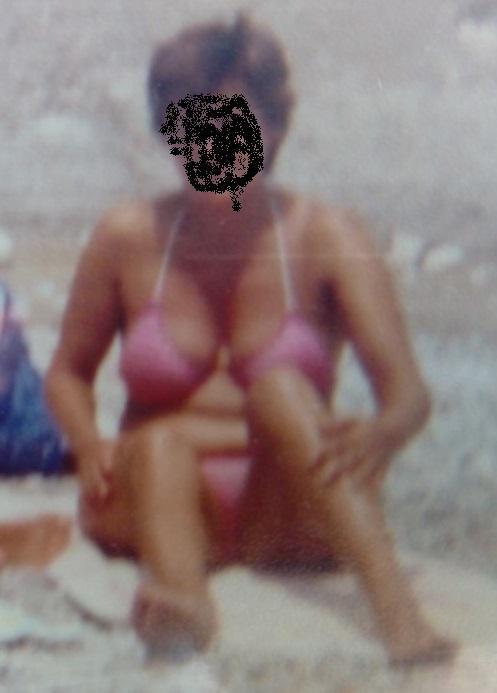 Mmm veo que sabes mirar a una mujer...ahí va una foto vintage de mamá luciendo bikinazo y tetazas en la playase la ve tiene buenas tetas pero lo que mas me pone es que tu mires mientras la sobo