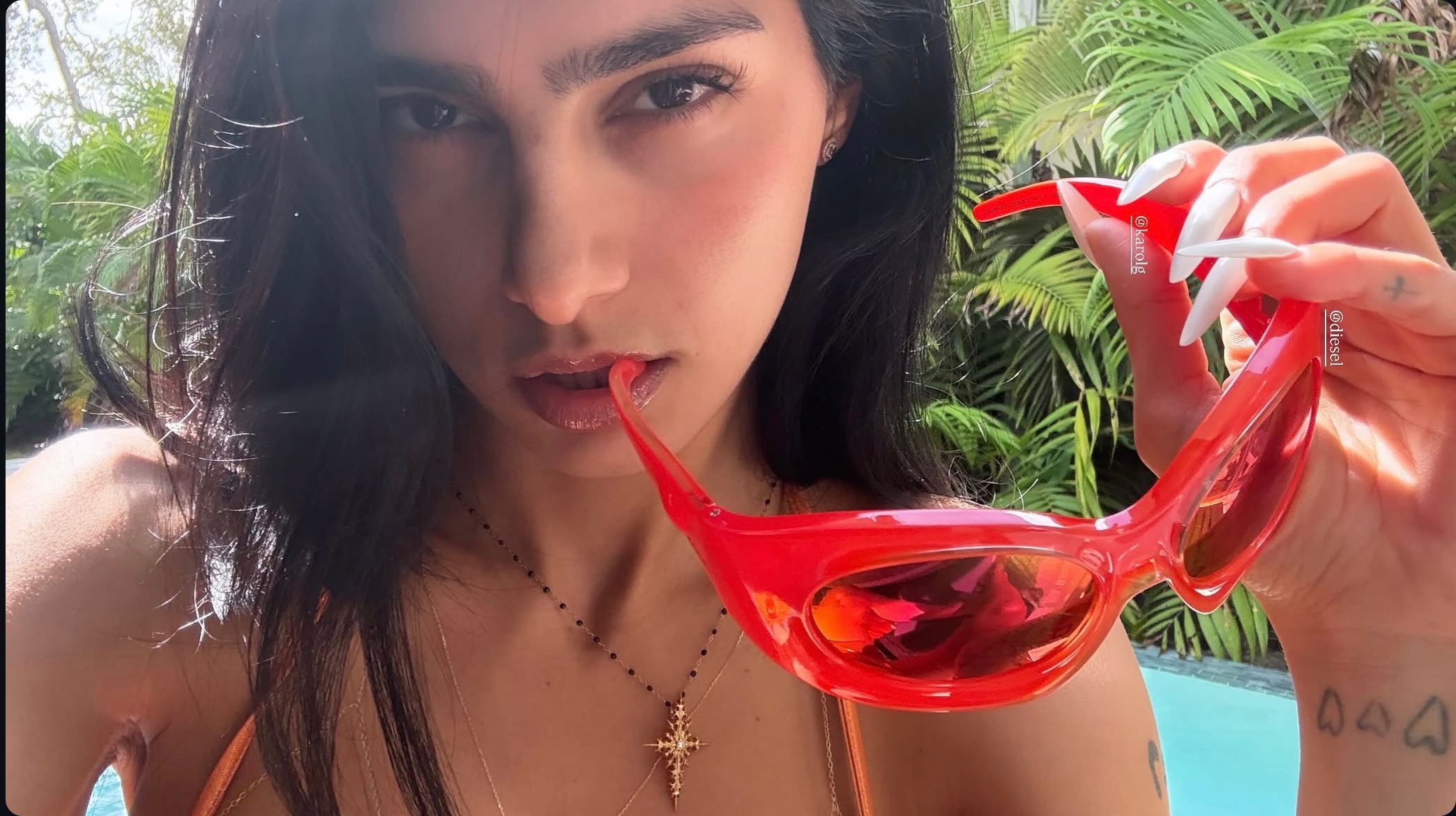 Qu茅 preciosa es...Ri茅ndose con el rabo en la boca y con todo el lefazo por la cara y las gafas.