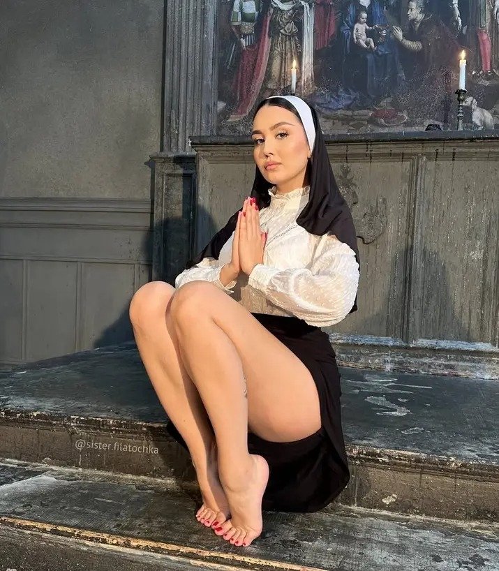 Unas medias y unas piernas que te haran creen en muchas cosas ejeY aquí os dejo una monja en lenceria luciendo sus pies, para a los que os guste el rollo monja porno que las disfrutéis.