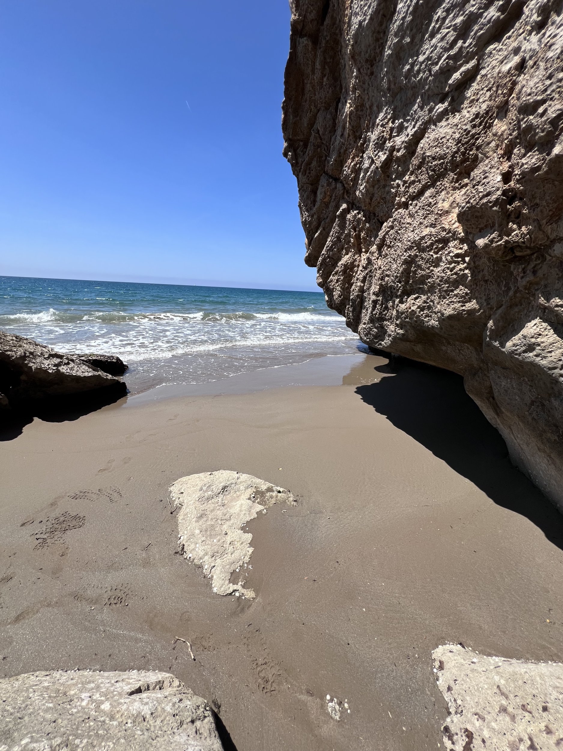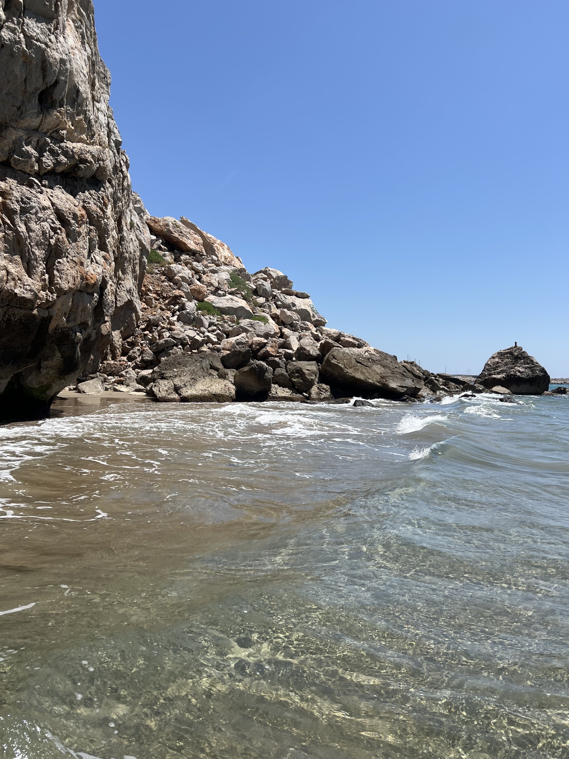 Hay dos, una calita pequeña que ahora con la subida del mar es más pequeña aun, y entre la roca grasa de calella y el faro hay otra, al costado de la roca grosa entre calella y santpol también hay otra nudista, genera se sabe que las parejas o personas que se quedan después de las 6 cuando comienza a caer el sol, es para lo que surja, es emocionante.
