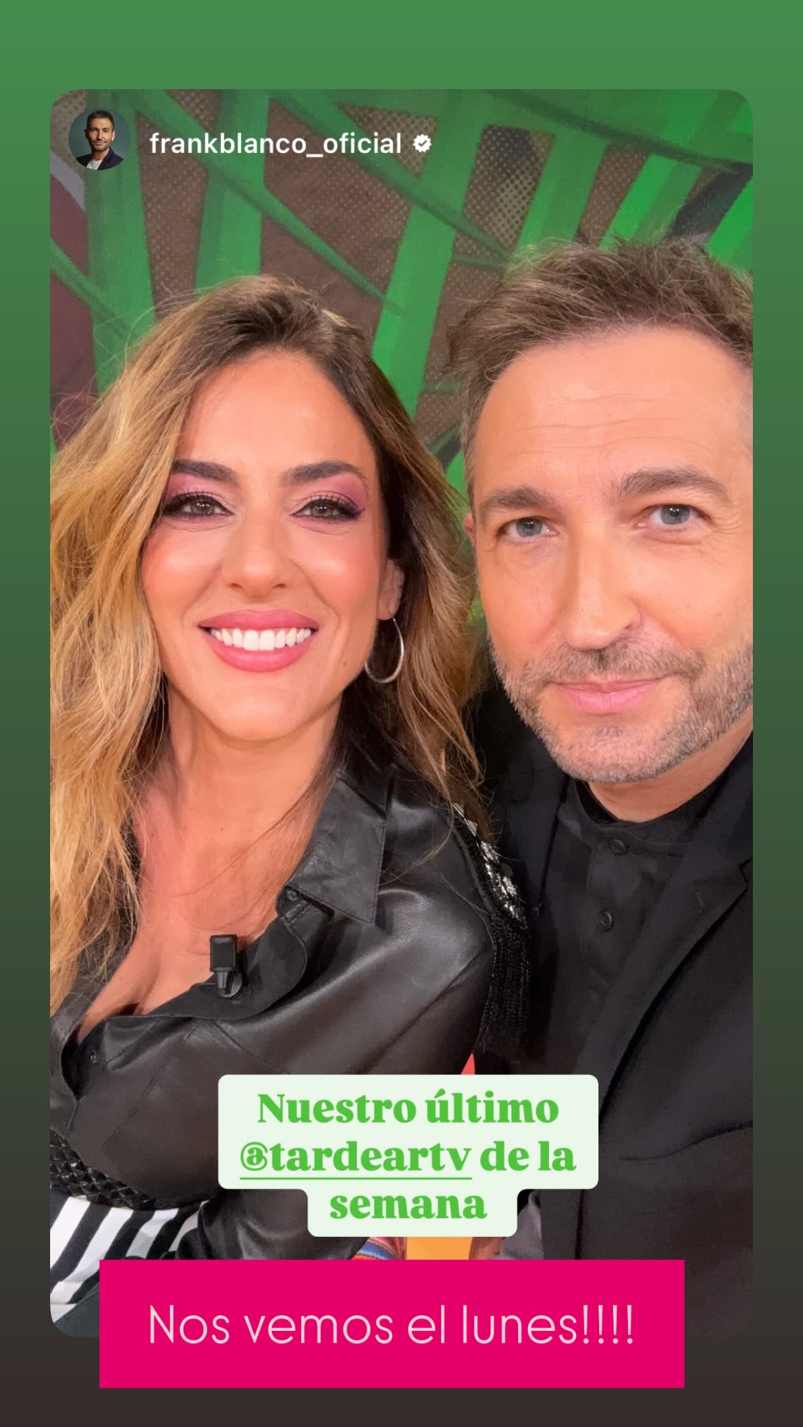Si, en serio? Pufff, pues voy a mirar si tiene algo puesto de imagenes y/o videos en su Insta y lo comparto.Ojalá alguien capture de ayer, que se le vieron las tetas por entre la camisa toda la tarde. Aunque con tanto rotulo y mini pantalla en esa basura de programa entiendo que a los "profesionales de capturar", destape, yeguas, etc. les de bastante pereza.