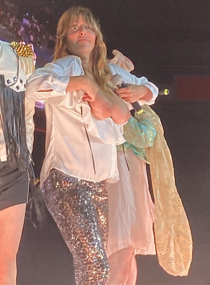 Tiene pinta de ser una bomba... no me importaría comprobarloBuenas tetas en pleno concierto... Debe ser una cachonda de cuidado en el catre...