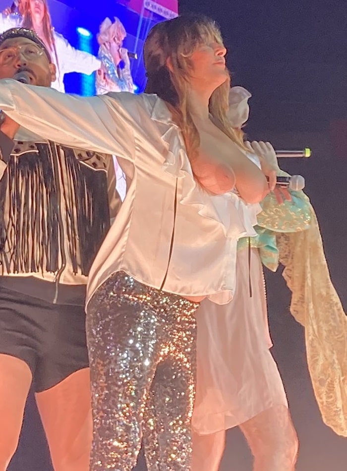 Buenas tetas en pleno concierto... Debe ser una cachonda de cuidado en el catre...Está tremenda